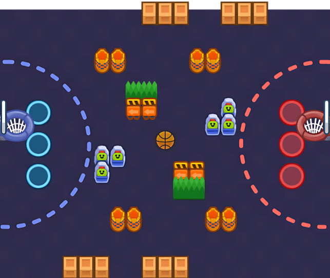 Brawl Stars Triple Double is a Basket Brawl map with a compact, symmetrical layout and limited open space, ideal for short-range combat.