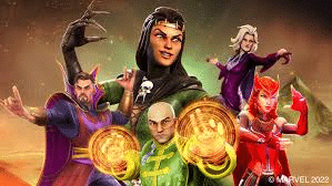 In Marvel Strike Force, the Darkhold team is assembled through a mix of Scourge events, campaign missions, and store availability. Morgan Le Fay is unlocked through the Pestilence Scourge event, making her the centerpiece of the team and one of the first Horsemen introduced. Scarlet Witch can be acquired via the Blitz Store and Milestone III Orbs, offering a consistent way to collect her shards. Agatha Harkness is available in the Cosmic Crucible Store, while Wong can be farmed from Heroes Hard Mode 1-9. Strange (Heartless) is accessible through Villains Hard Mode 5-9 and the Arena Store, providing flexibility in farming his shards.